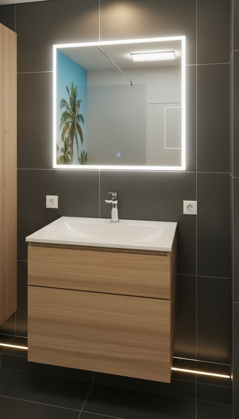 • Badmöbel in Holzoptik mit klarer Linienführung